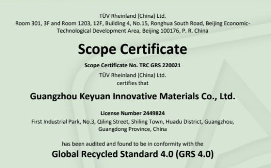 近期,广州科苑顺利通过全球回收标准 (GRS 4.0)审核,认证证书编号为 TRC GRS 220021。 材料重复使用有助于减少对不可再生资源的浪费,减轻垃圾...